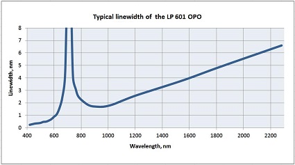 LP600系列光参量振荡器,具有输出能量高、宽调谐范围、容易维护、稳定性高等特点。主要优点是需要的泵浦功率密度非常低。因此,晶体和其他光学元件可长时间工作而不会损伤。精密的光学支架和防尘设计保证了最高的可靠性和输出辐射参数长时间稳定性。LP600系列的光学设计保证了即使在普通多模Nd:YAG激光泵浦时也能高效工作。用户无需购买或使用复杂的TEM00模或SLM泵浦激光器,大大减少了工作和维护费用。所以,LP600系列OPO广受用户欢迎。另外,超级紧凑设计占地面积小,容易集成到其他任何激光系统中。LP600系列OPO具有从410nm到2500nm极宽的调谐范围。可以使用镜片或偏振波长分束器将信号光和闲频光高效地分开。
