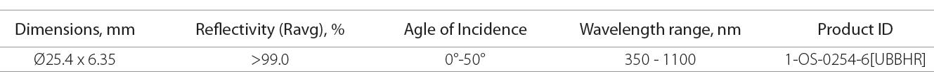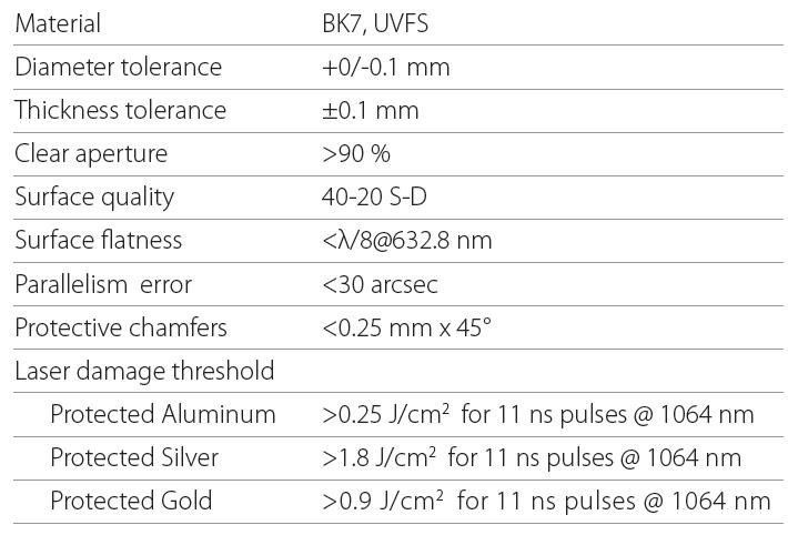 该反光镜镀有介质膜,可用于改善激光光斑形状和质量,具有高损伤阈值,覆盖波长范围为266-2500nm。