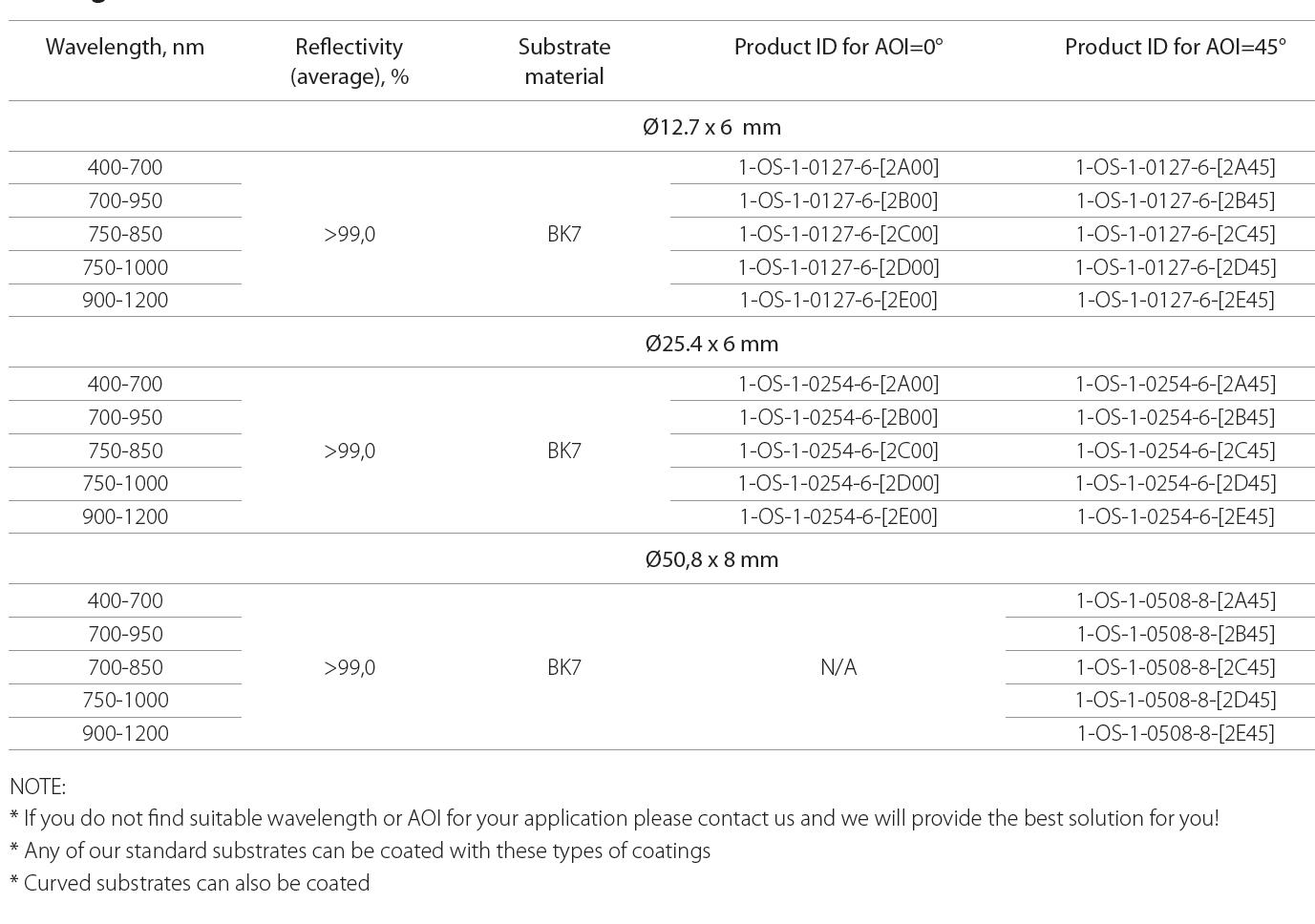 1.HR宽带反光镜(HRBroadBandMirrors)