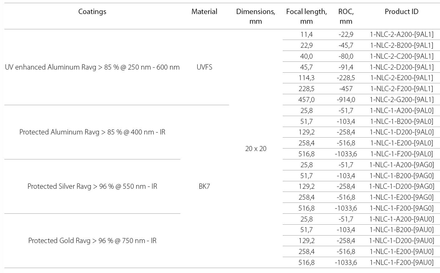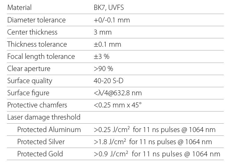 可用于将光束聚焦成窄线,并且消除色差。镀金属膜,可适用于宽光谱的光束反射,可用于光束扩束或者调整为线性。