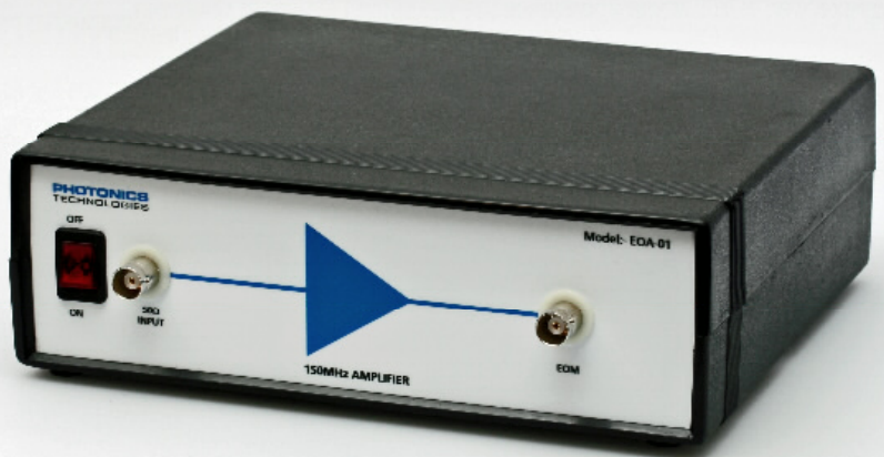 本产品EOA-01可放大信号从0.4-150MHz,增益20dB。输入1Vpp电压可以产生10V输出信号,用于驱动空间光电光调制器。BNC输入和输出接口适用于大多数的光学设备。