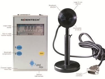 美国Scientech公司Astral系列便携式激光功率计适用于测量200~1100nm范围内低功率连续激光(CW Laser)。Astral系列激光功率计由一个高灵敏的硅光探测器及相应表头组成。为确保测量的准确性,Astral系列激光功率计在所有波长点上都进行了严格的功率校准(NIST traceable)。