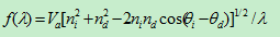式中ni为入射光折射率,nd为衍射光折射率,λ为真空光波长,f为超声波频率,Va为矢量方向的超声波速度值。